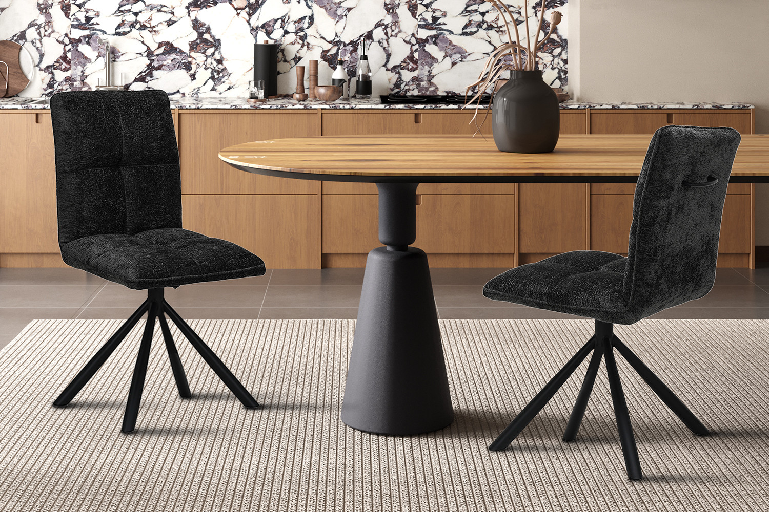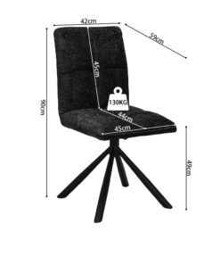 Draaibare eetkamerstoel Jack donkergrijs stof, afmetingen 91×45×59 cm, stijlvol en comfortabel.