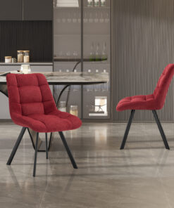 De diepe rode kleur brengt karakter en sfeer in het interieur en combineert mooi met houttinten, zwarte accenten en moderne materialen. Zoek je een stijlvolle eetkamerstoel met rode stof die comfort en een krachtige uitstraling samenbrengt? Dan is deze stoel een mooie keuze voor dagelijks gebruik.