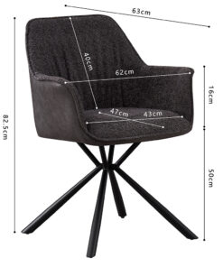 Eetkamerstoel Lucie grijze bouclé en lichtgrijs PU, afmetingen 82,5×62×63 cm, stijlvol en comfortabel.