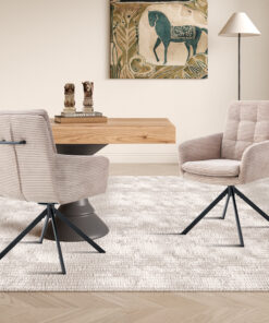 De stijlvolle zandkleur voegt karakter en sfeer toe aan de ruimte en combineert moeiteloos met houten meubels, zwarte accenten en moderne materialen. Zoek je een draaibare stoel in zand corduroy die comfort en een eigentijdse uitstraling samenbrengt? Deze stoel is perfect voor dagelijks gebruik.