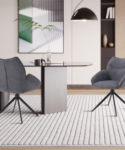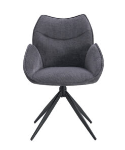 Draaibare eetkamerstoel Mahi donkergrijs stof, afmetingen 90×59,5×66 cm, stijlvol en comfortabel.