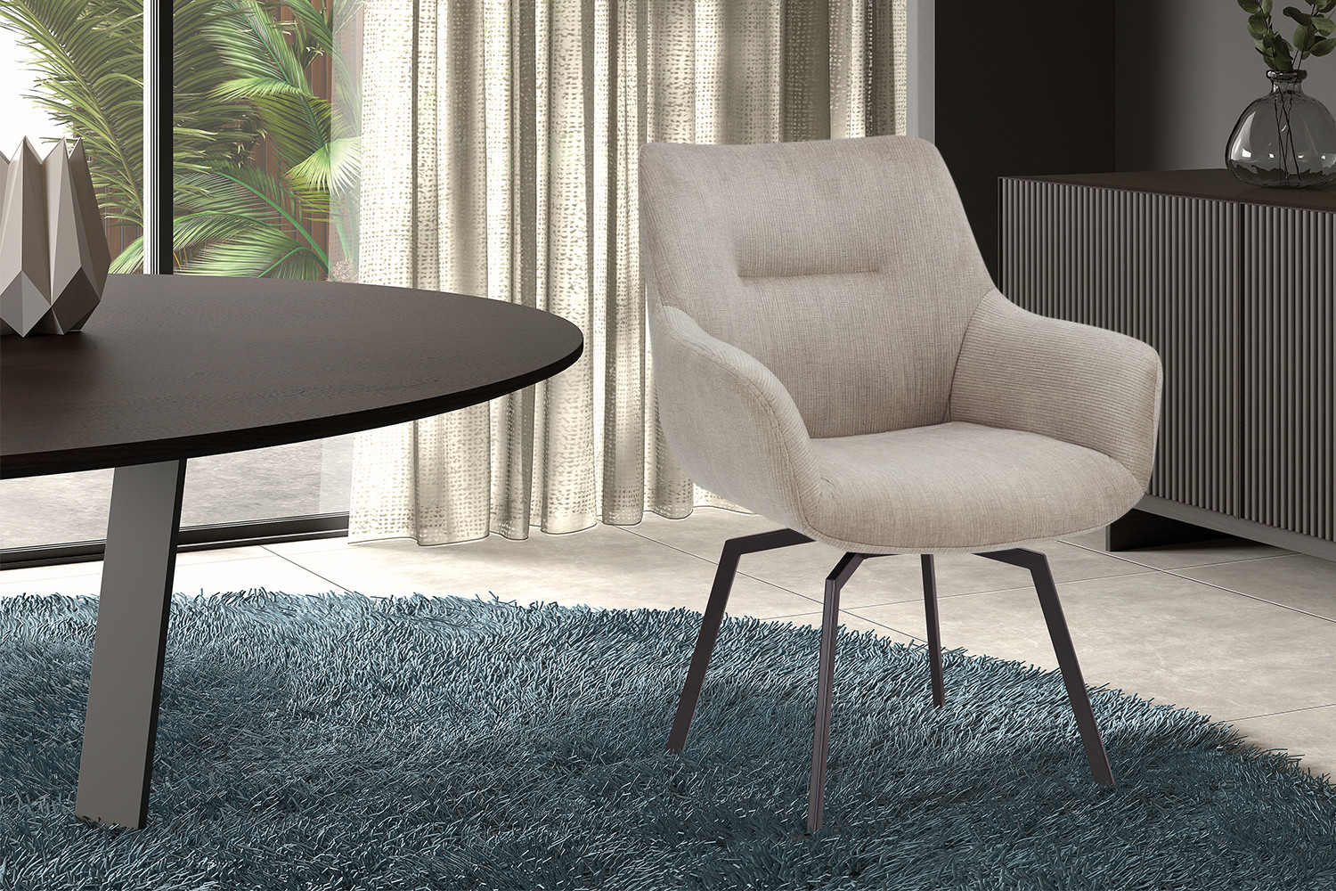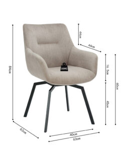 De neutrale beige kleur brengt rust en elegantie in de ruimte en combineert moeiteloos met houttinten, zwarte accenten en moderne materialen. Zoek je een stijlvolle draaibare eetkamerstoel die comfort en een eigentijdse uitstraling samenbrengt? Dan is dit een uitstekende keuze voor dagelijks gebruik.