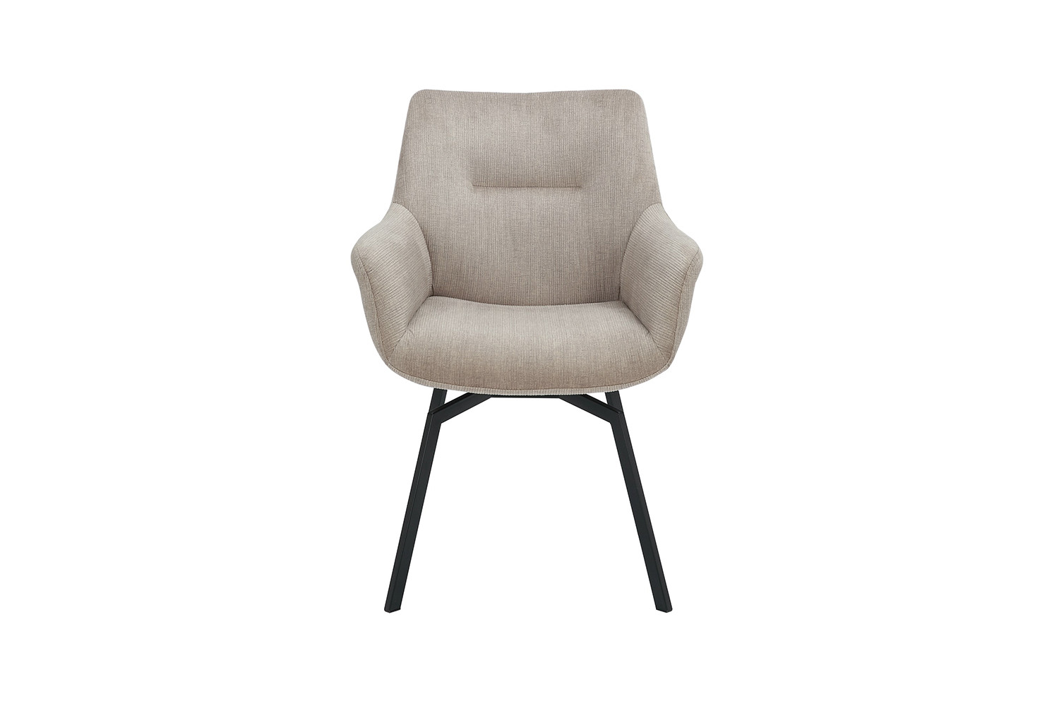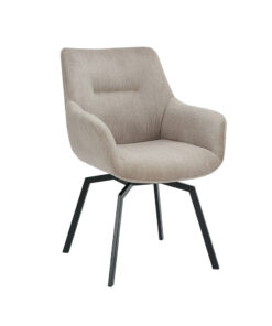 Deze draaibare eetkamerstoel Modest in beige ribfluweel geeft je interieur een warme en moderne uitstraling. Met een hoogte van 84 cm en een formaat van 63 × 63 cm biedt de stoel een comfortabele zit aan de eettafel of in een gezellige zithoek. De zachte ribfluweelstof zorgt voor prettig zitcomfort en maakt de stoel geschikt voor lange diners of ontspannen momenten.