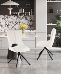 Draaibare eetkamerstoel Mori beige stof, afmetingen 90×48×59,5 cm, stijlvol en comfortabel.