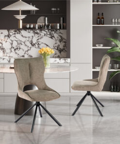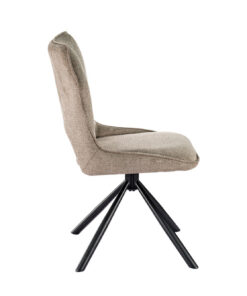 Deze draaibare eetkamerstoel met peperkleurige stoffen bekleding geeft je interieur een warme en moderne uitstraling. Met een hoogte van 90 cm en een formaat van 48 × 59,5 cm biedt de stoel een comfortabele zit aan de eettafel of in een gezellige zithoek. De zachte stof zorgt voor prettig zitcomfort en maakt de stoel geschikt voor lange diners of ontspannen momenten.