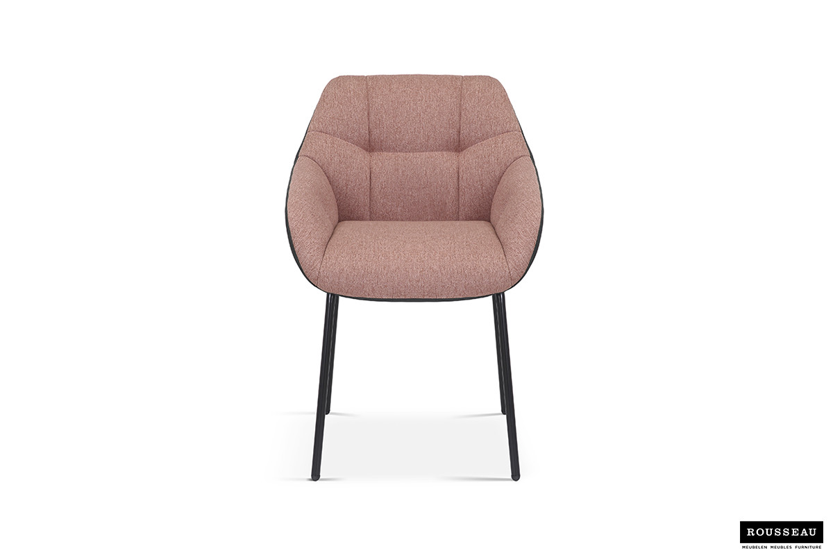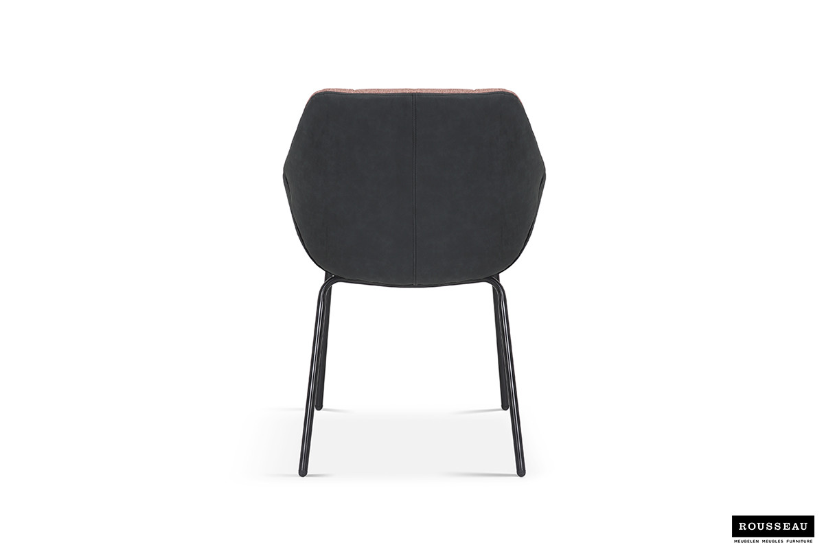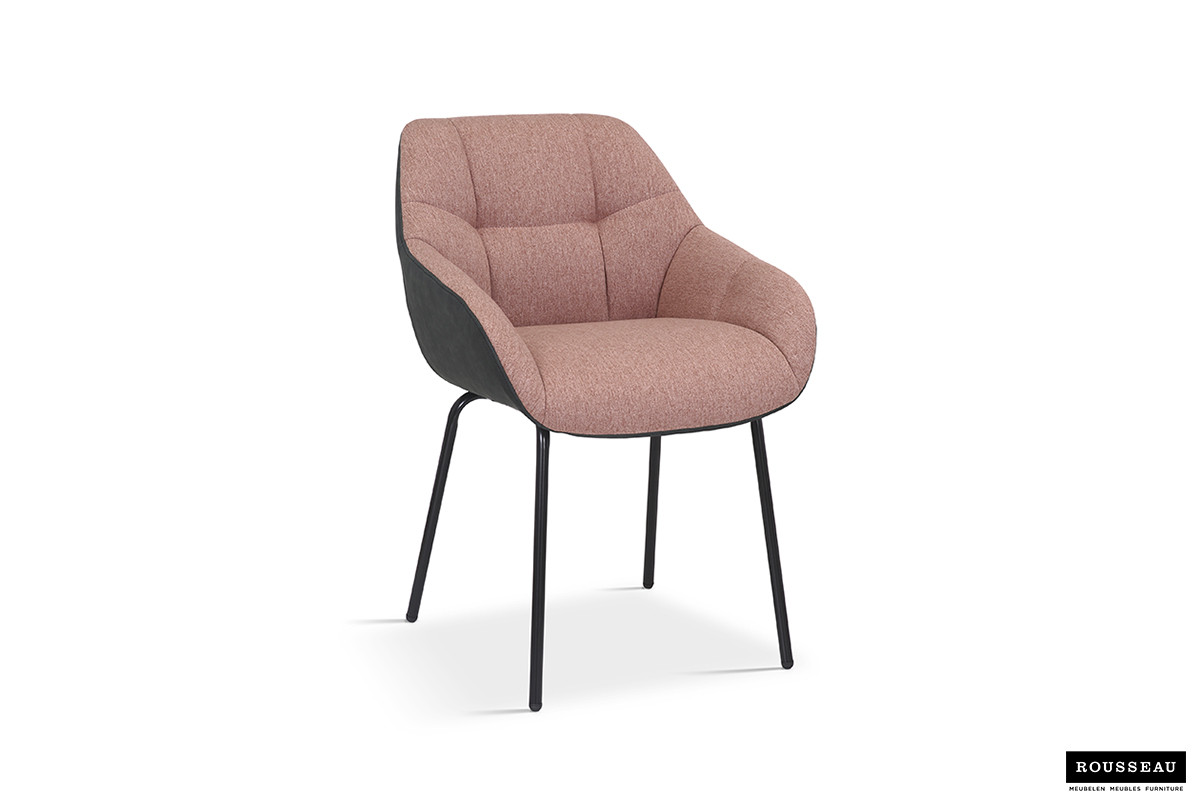 Eetkamerstoel Sem roze stof met donkergrijze PU rug, 85×57,5×65 cm, stijlvol en comfortabel.