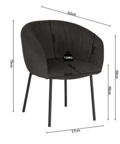 Deze eetkamerstoel Sevilla in grijs ribfluweel geeft je interieur een luxe en moderne uitstraling. Met een hoogte van 79 cm en een formaat van 57 × 62 cm biedt de stoel een comfortabele zit aan de eettafel of in een gezellige zithoek. De zachte ribfluweelstof zorgt voor prettig zitcomfort en maakt de stoel geschikt voor lange diners of ontspannen momenten.
