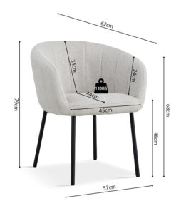 Deze eetkamerstoel met beige stoffen bekleding geeft je interieur een warme en stijlvolle uitstraling. Met een hoogte van 79 cm en een formaat van 57 × 62 cm biedt de stoel een comfortabele zit aan de eettafel of in een gezellige zithoek. De zachte stof zorgt voor prettig zitcomfort en maakt de stoel geschikt voor lange diners of ontspannen momenten.