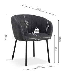 De diepe donkergrijze kleur brengt elegantie en sfeer in de ruimte en combineert moeiteloos met houttinten, zwarte accenten en moderne materialen. Zoek je een stijlvolle eetkamerstoel met donkergrijze stof die comfort en een eigentijdse uitstraling samenbrengt? Dan is dit een uitstekende keuze voor dagelijks gebruik.