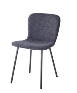 Eetkamerstoel Susan met donkergrijze bouclé stof, afmetingen 77×45×52 cm, modern en comfortabel.