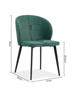 Eetkamerstoel 80 cm hoog, 51×55 cm, groene stoffen stoel voor moderne en stijlvolle eetkamers.