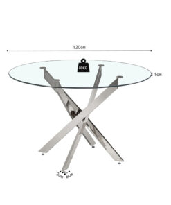 Deze ronde tafel met een 10 mm gehard glazen blad en chromen poten geeft je eetkamer een frisse, moderne uitstraling met een luxe touch. Met een formaat van 120 × 120 cm en een hoogte van 77 cm is hij ideaal voor gezellig tafelen, een stijlvolle keukenhoek of een compacte eetruimte waar je toch ruim wilt zitten. Het transparante glas houdt de ruimte optisch licht en open, terwijl chroom voor een strak en elegant accent zorgt.