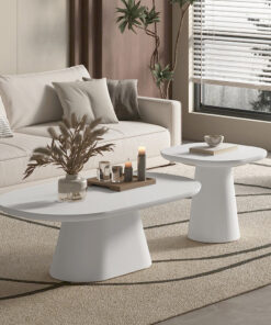 Deze ovale salontafel in cementlook ecru geeft je woonkamer een rustige, moderne uitstraling. De zachte ecru tint en betonlook zorgen voor een minimalistische sfeer die perfect past bij Scandinavische, Japandi en eigentijdse interieurs. Door het compacte formaat is dit een ideale koffietafel voor kleinere zithoeken, een appartement of als extra tafel naast je bank. Een stijlvolle blikvanger die mooi combineert met hout, linnen en natuurlijke accessoires.
