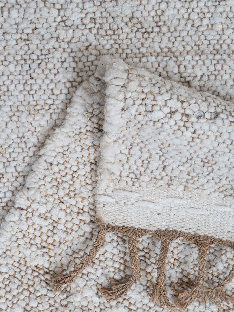 Of je nu een modern, Scandinavisch of landelijk interieur hebt, dit wollen vloerkleed met franjes past moeiteloos bij verschillende interieurstijlen. Vloerkleed Sol is een veelzijdig stuk dat een warme sfeer geeft aan elke ruimte. Wol staat bekend om zijn duurzaamheid en natuurlijke weerstand tegen vuil en vlekken. Hierdoor is dit kleed ook een praktische aanvulling op je interieur! Vloerkleed Sol is verkrijgbaar in de volgende maten: 160 x 230 cm, 200 x 240 cm, 200 x 280 cm en 240 x 340 cm. Tips voor het onderhouden van een wollen vloerkleed: – Het is belangrijk om het vloedkleed te stofzuigen, dit is direct mogelijk vanaf de eerste dag. Let op! Dit kan alleen met de gladde stofzuigermond op een lage zuigstand (zonder roterende borstel). Zo voorkom je dat restjes stof zich hechten en uiteindelijk gaan ophopen tussen het materiaal en kunnen de vezels zichzelf herstellen. – Wol is een natuurproduct, bespuit het vloerkleed ieder kwartaal licht met koud water om de wol in goede conditie te houden. – Om spoorvorming te voorkomen raden wij aan het karpet 1 keer in de 3 maanden 180 graden om te draaien. Daarnaast is het ook goed om het vloerkleed een aantal keer per jaar buiten uit te kloppen.